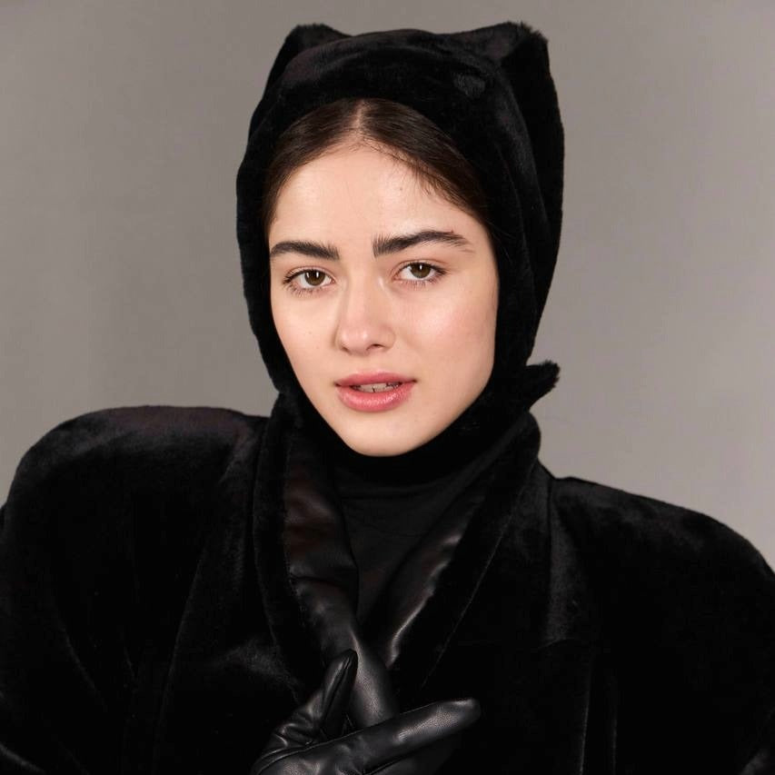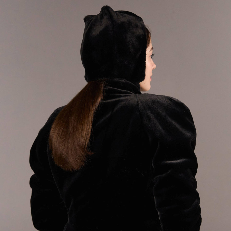 The Cat eco-fur hat with ears is a sophisticated accent for the fall-winter season. It goes perfectly with the Calla fur coat, emphasizing the sensuality and character of the look.