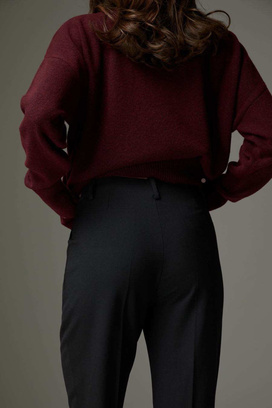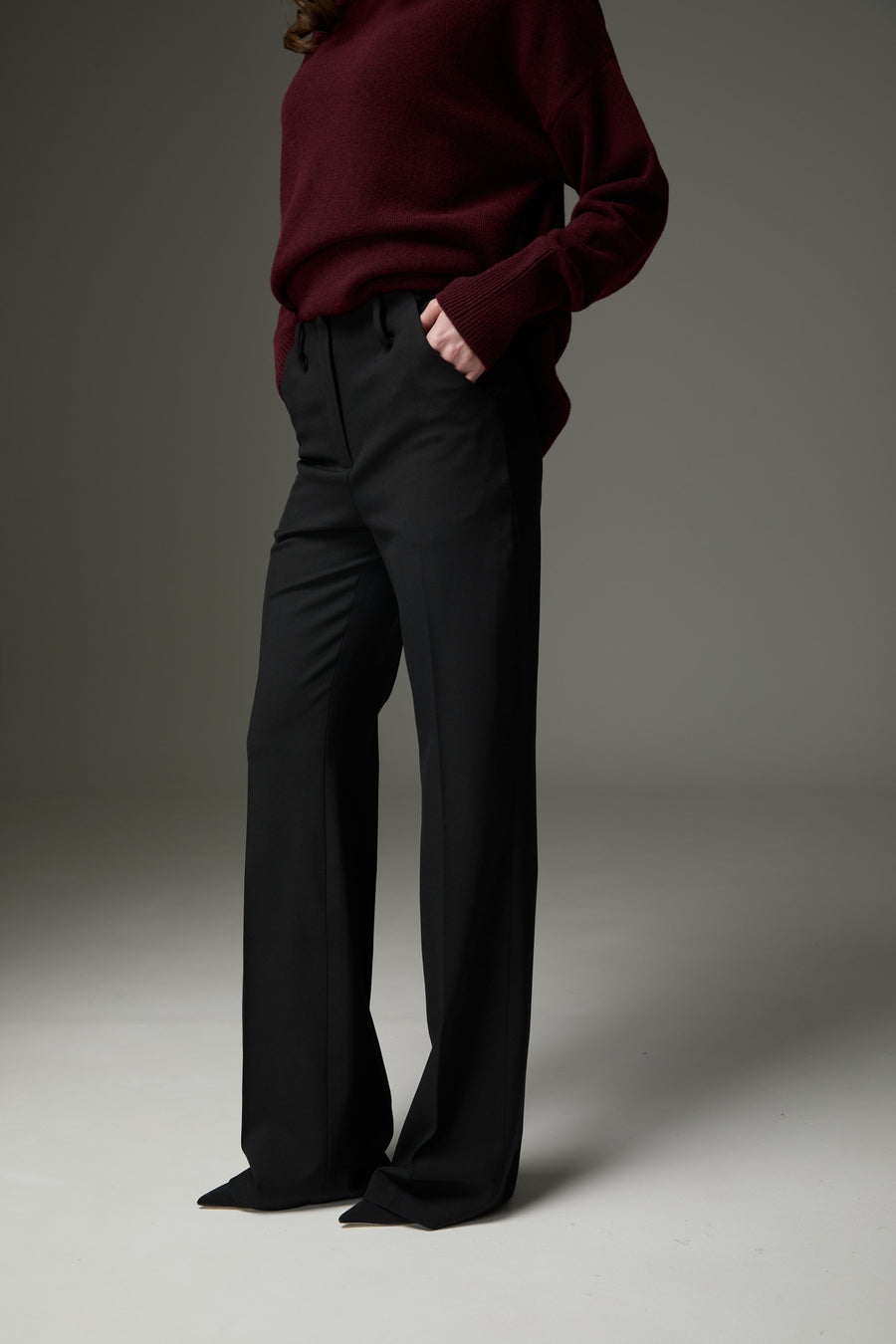 Класичні брюки з натуральної вовни. Цільнокрійний пояс та вертикальна стрілка - ідеально подовжують силует.