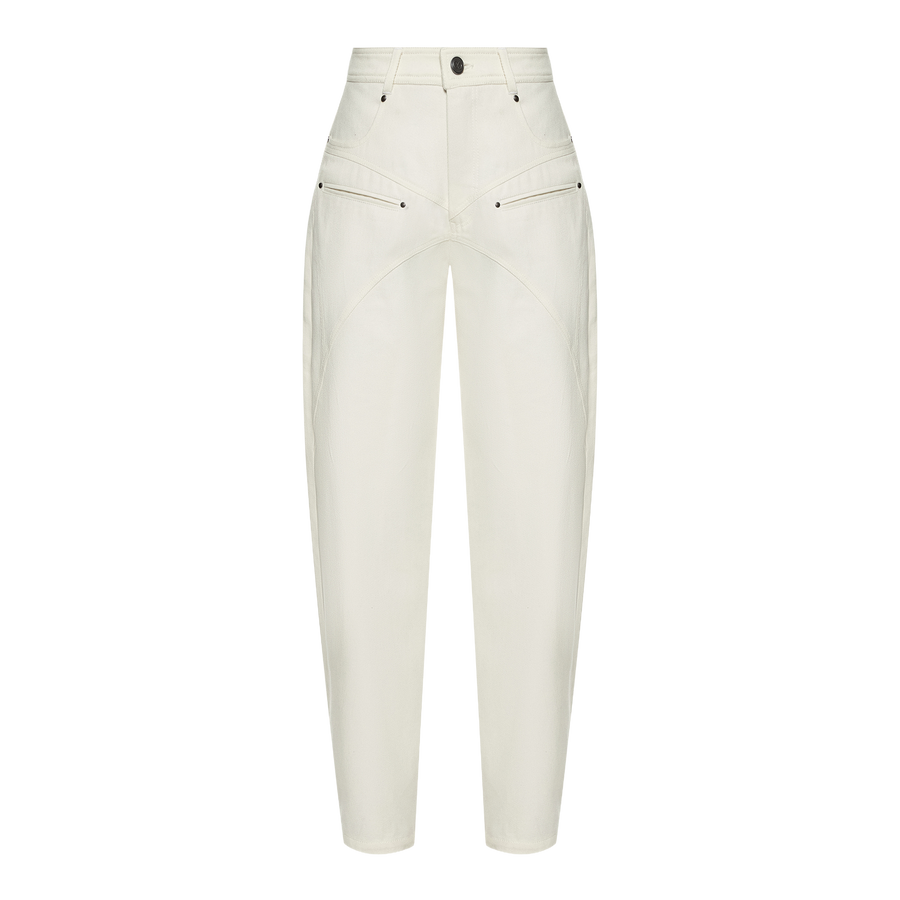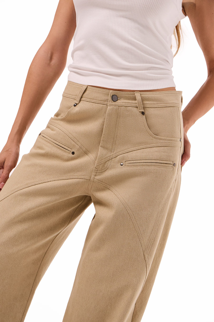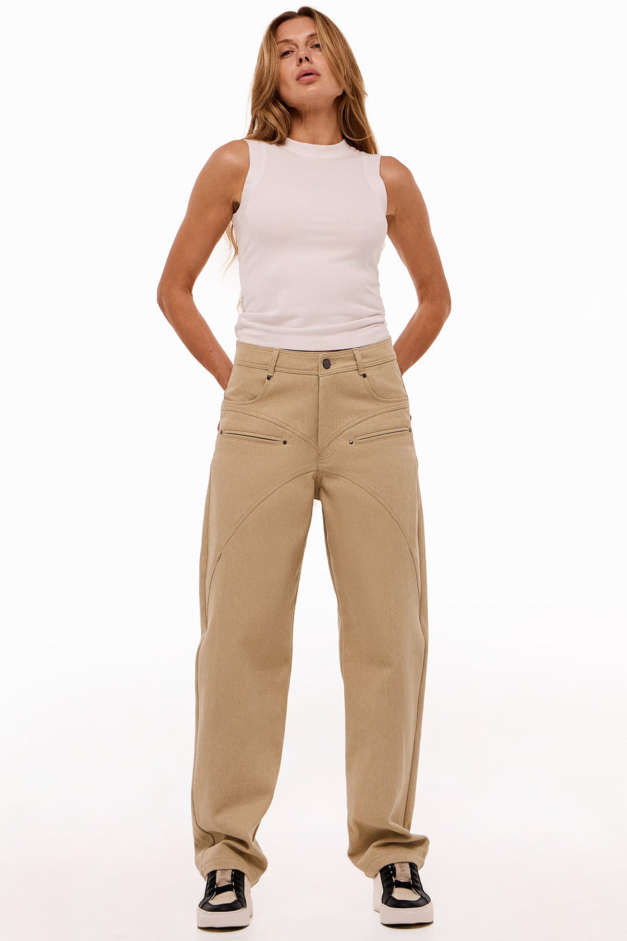 Джинси De-mur - це поєднання тренду та зручності. Модель має округлений силует у стилі baggy balloon із великою кількістю декоративних рельєфів.