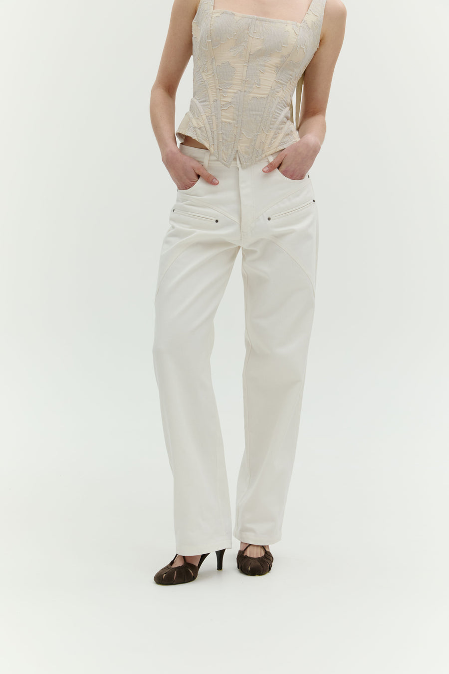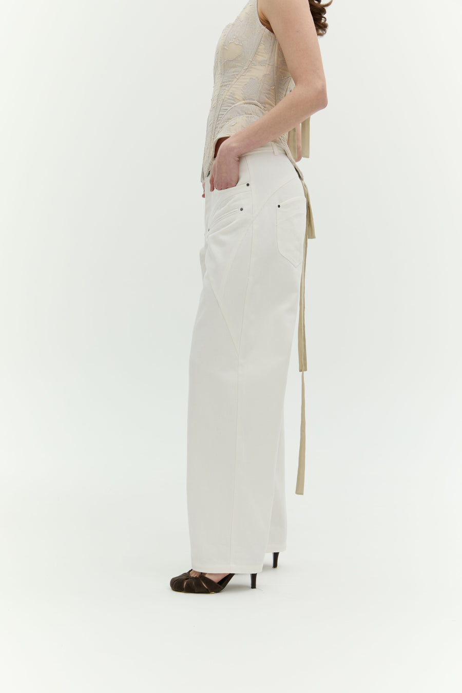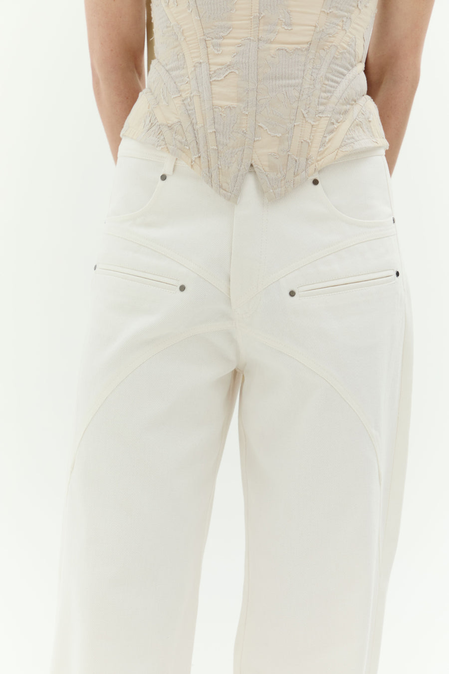 Джинси De-mur - це поєднання тренду та зручності. Модель має округлений силует у стилі baggy balloon із великою кількістю декоративних рельєфів.