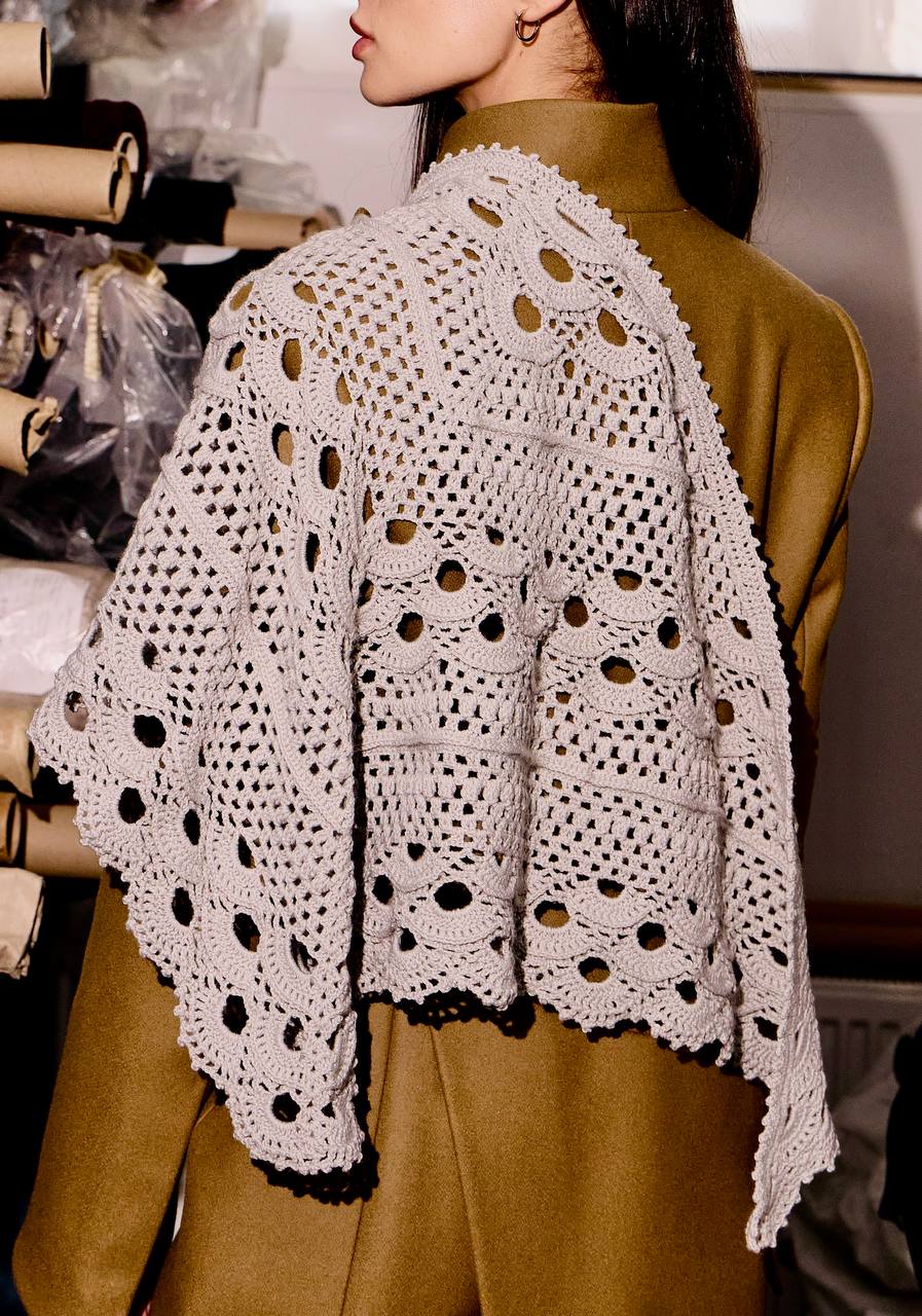 Ця в'язана хустка ручної роботи поєднує стиль і функціональність: м'яка, тепла, але при цьому легка. Виготовлена з якісної пряжі, забезпечує комфорт у прохолодну погоду, не створює відчуття важкості. Унікальний візерунок і акуратна обробка країв роблять кожну хустку неповторною. Носіть її на шиї, як накидку на плечі або як декоративний акцент на талії.