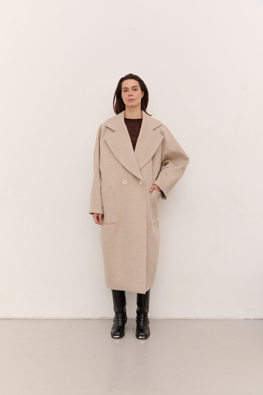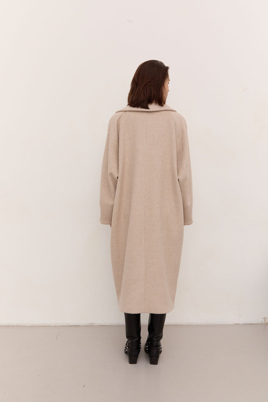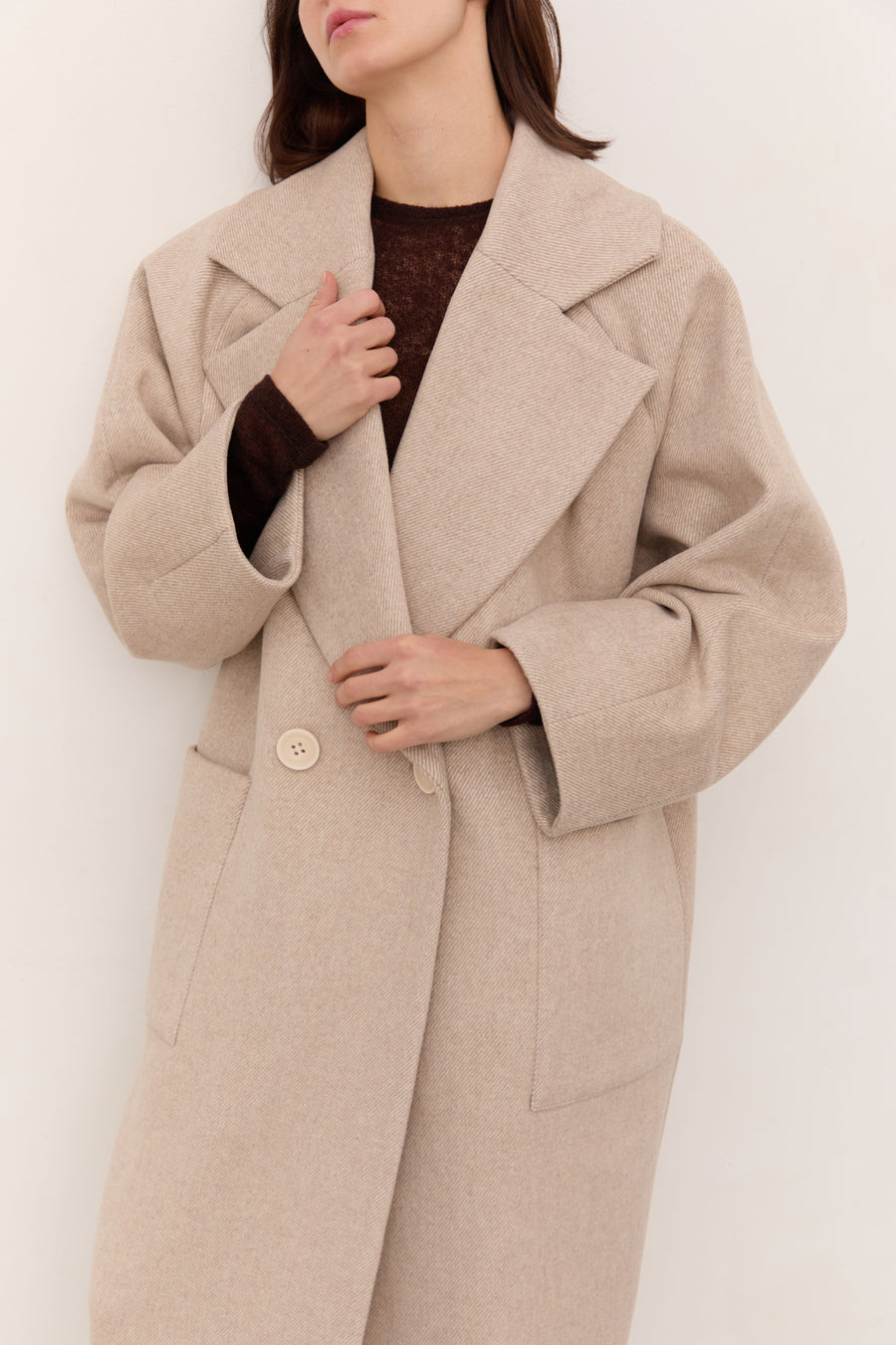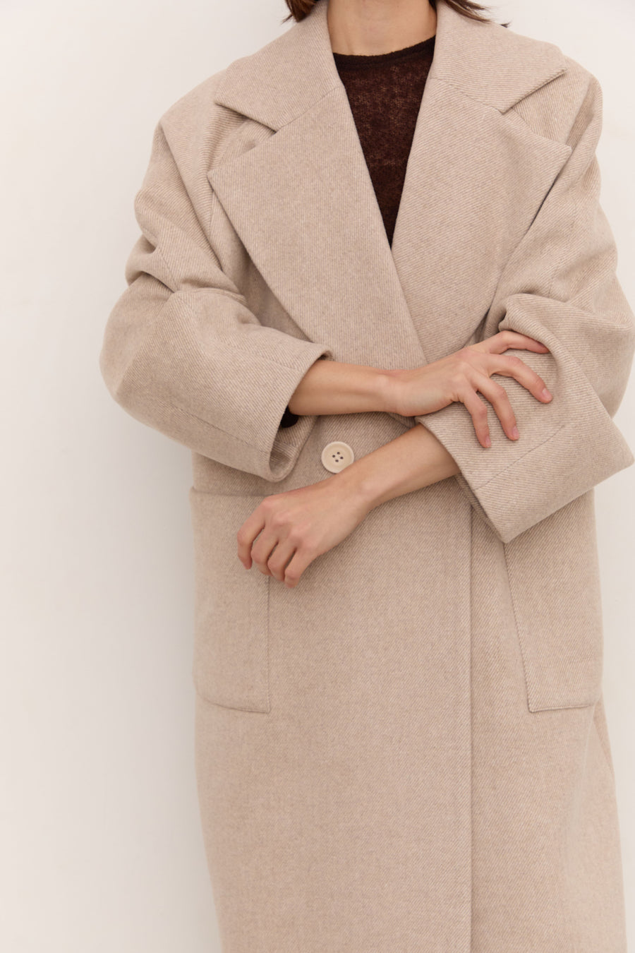 Пальто О-силуету вирізняється м’якою формою та лаконічним дизайном. Воно красиво огортає фігуру, створюючи жіночний і водночас невимушений силует. Його округлі лінії формують трендовий об’єм, а вільний крій підходить для багатошарових образів.