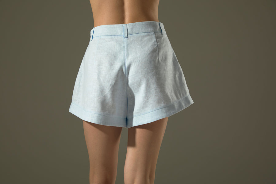 Короткі шорти створені з урахуванням сучасної естетики та досконалого крою. Модель трапецієподібного крою, яка створює об'єм та забезпечує свободу рухів та комфорт протягом усього дня. Шорти пошиті з використанням техніки люксової обробки швів.