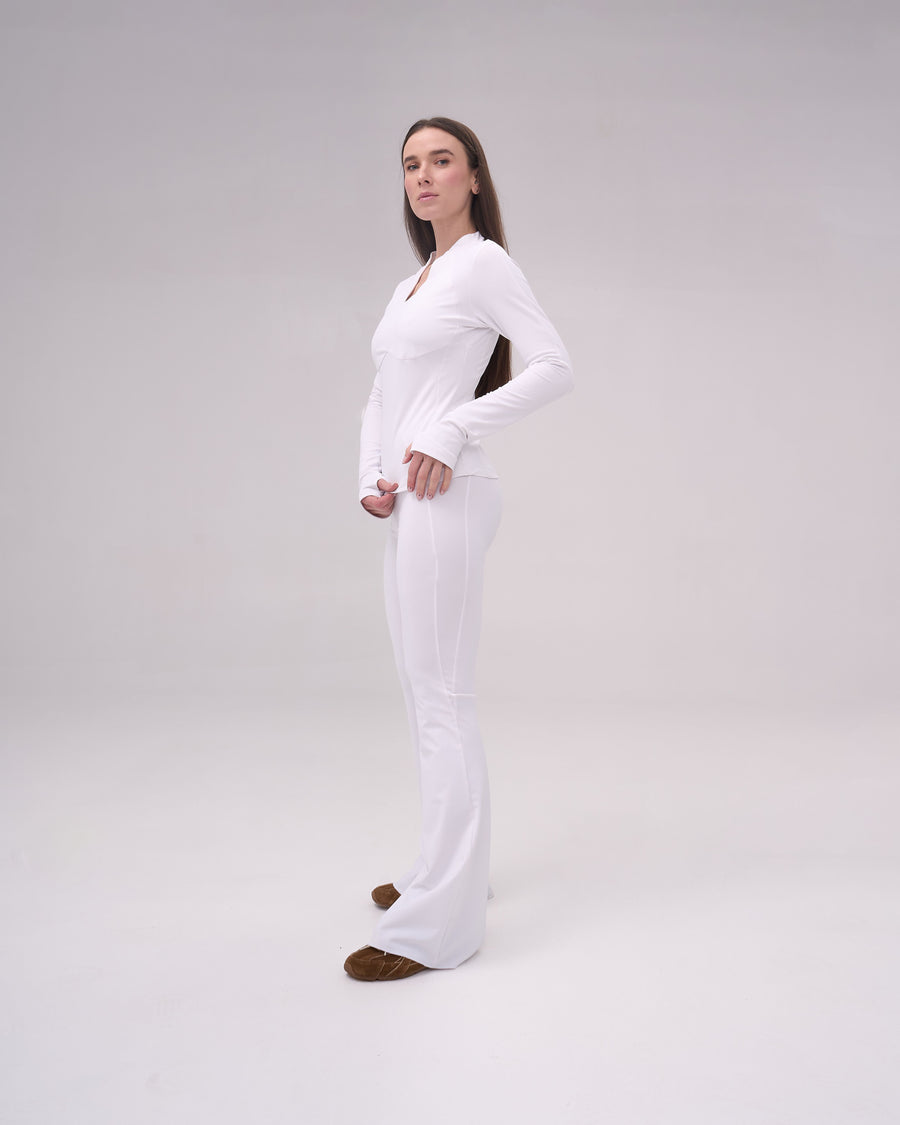 Штани-кльош з рельєфними лініями, які візуально подовжують ноги та дарують абсолютну свободу руху.