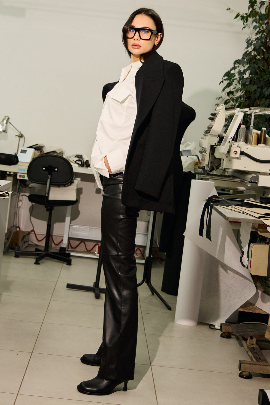 Штани з екошкіри прямого крою з акцентним швом на коліні. Ідеально збалансована посадка підкреслює лінію талії та візуально формує витягнуту вертикаль. Накладні кишені ззаду завершують мінімалістичний дизайн та додають моделі виразності.