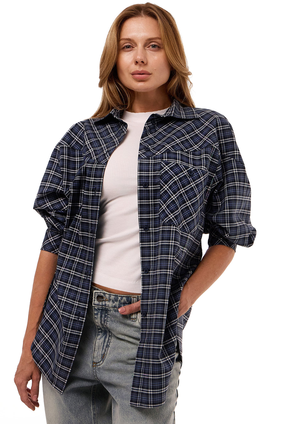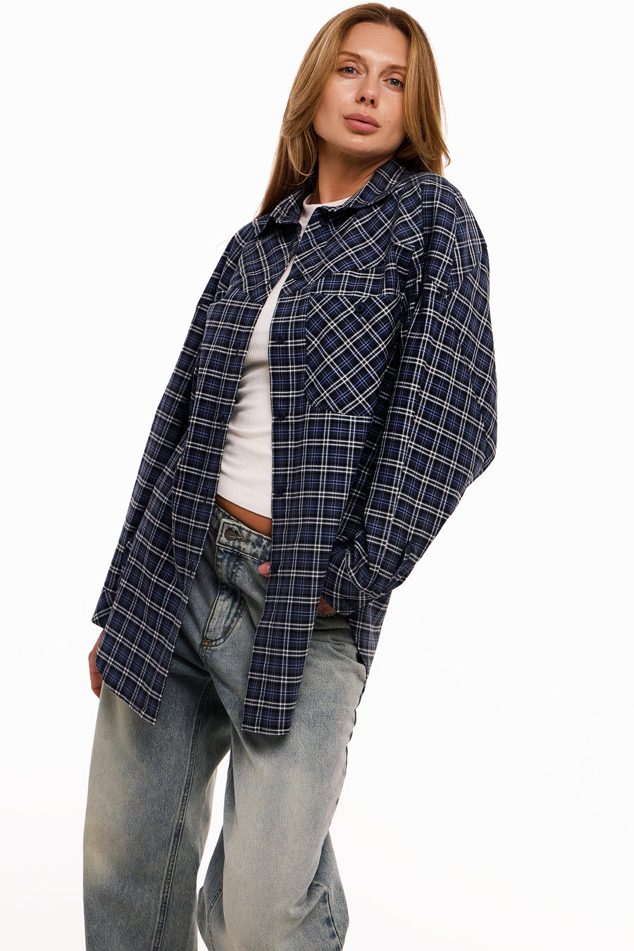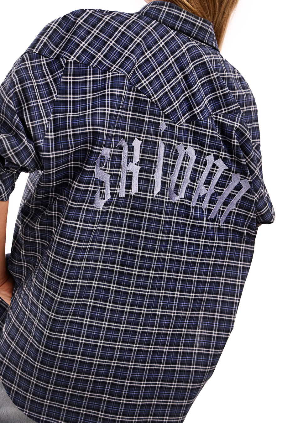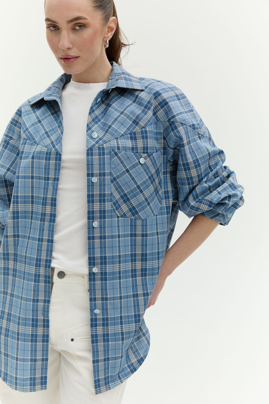 Легка сорочка Oversize з акцентною фігурною кокеткою. Велика фірмова вишивка по спинці.
