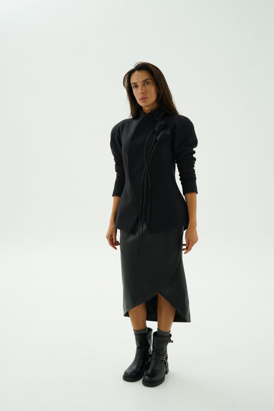 Спідниця міді з асиметричним подолом надає образу динамічності та оригінальності. Модель підкреслює форму тіла, залишаючись легкою й рухливою. Ідеальна для сміливих і модних образів.