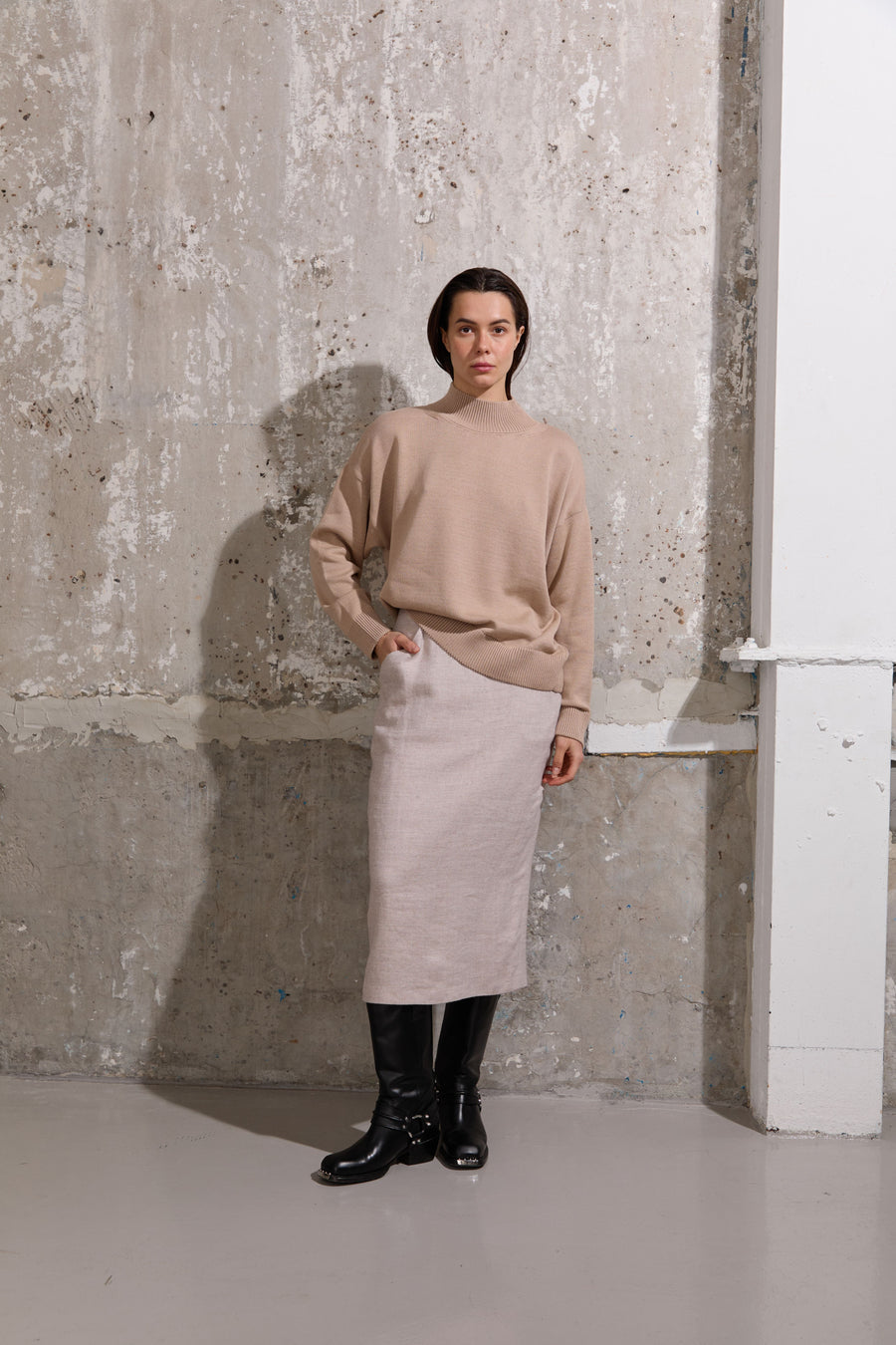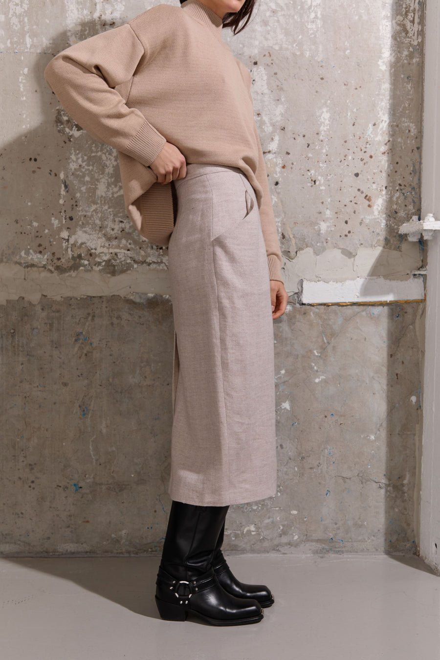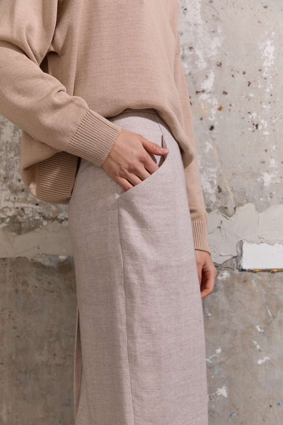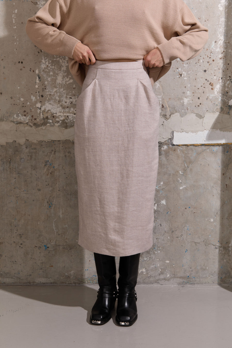 Вовняна спідниця міді прямого крою на підкладі з акцентними кишенями та шлицею ззаду - ідеальна для різних образів і стилів