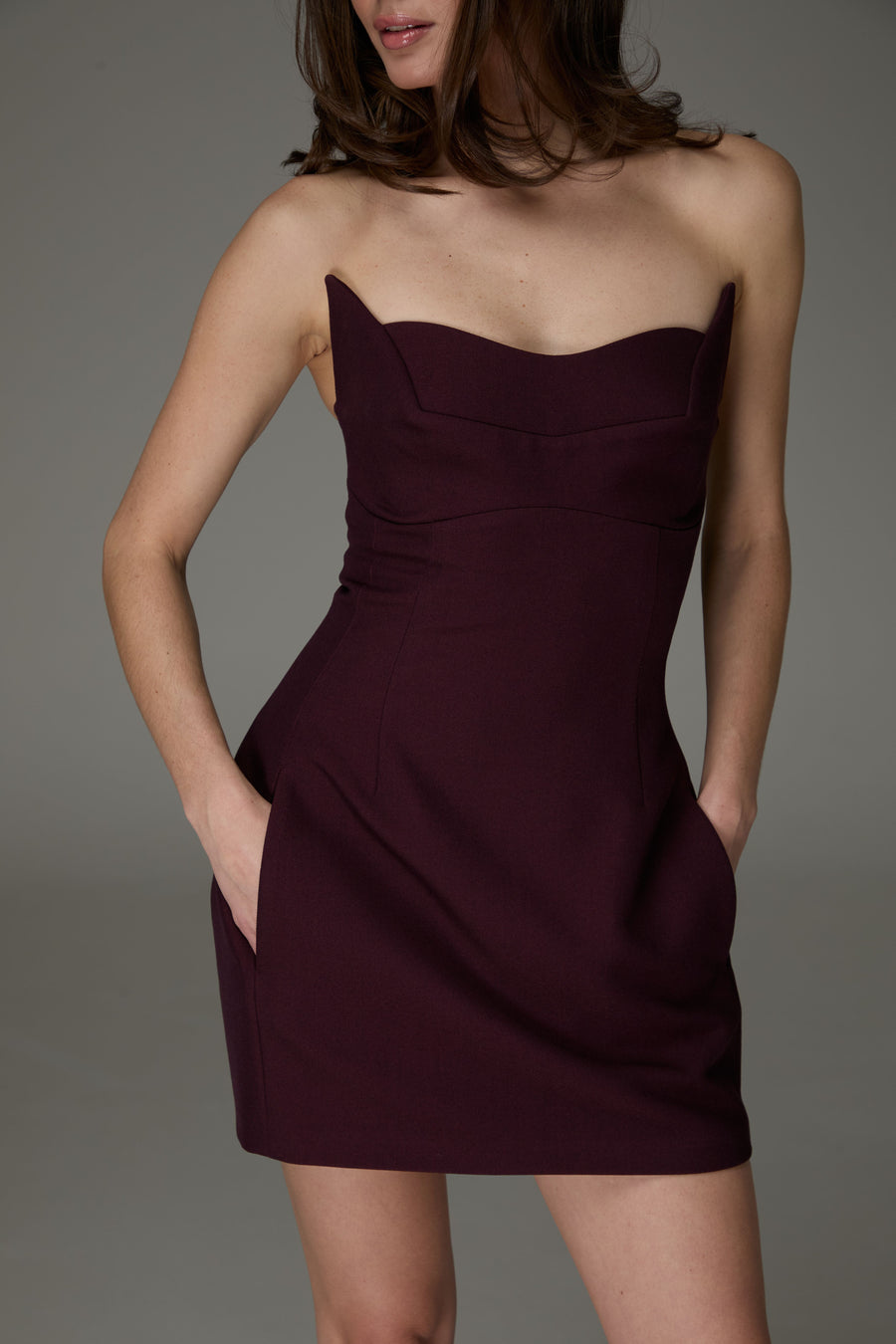 Коктейльна сукня mini з дропу CAT з акцентним ліфом, який формує виразну композицію верхньої частини, тоді як продуманий силует підкреслює жіночність. Потайні кишені інтегровані в дизайн, додають практичності без втрати елегантності