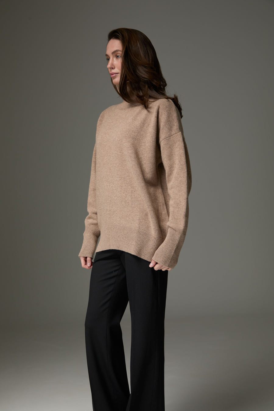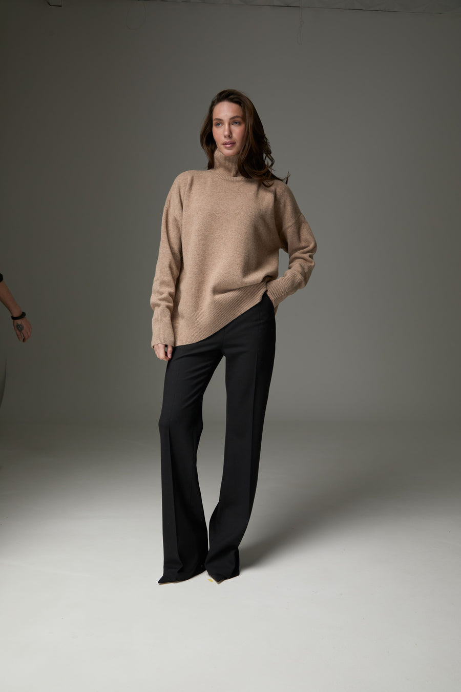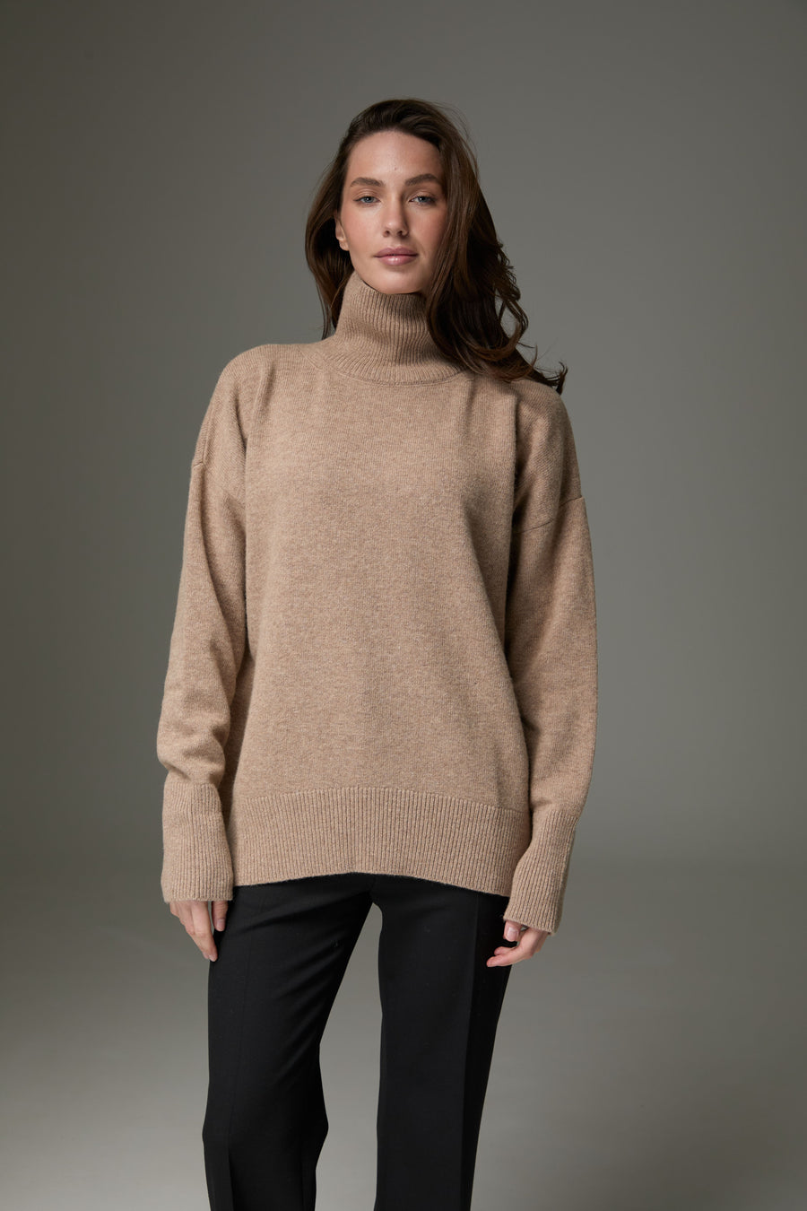 Вовна ягня робить цей подовжений светр надзвичайно м’яким і приємним на дотик. Він створений щоб дарувати затишок і тепло навіть у найхолодніші дні.
