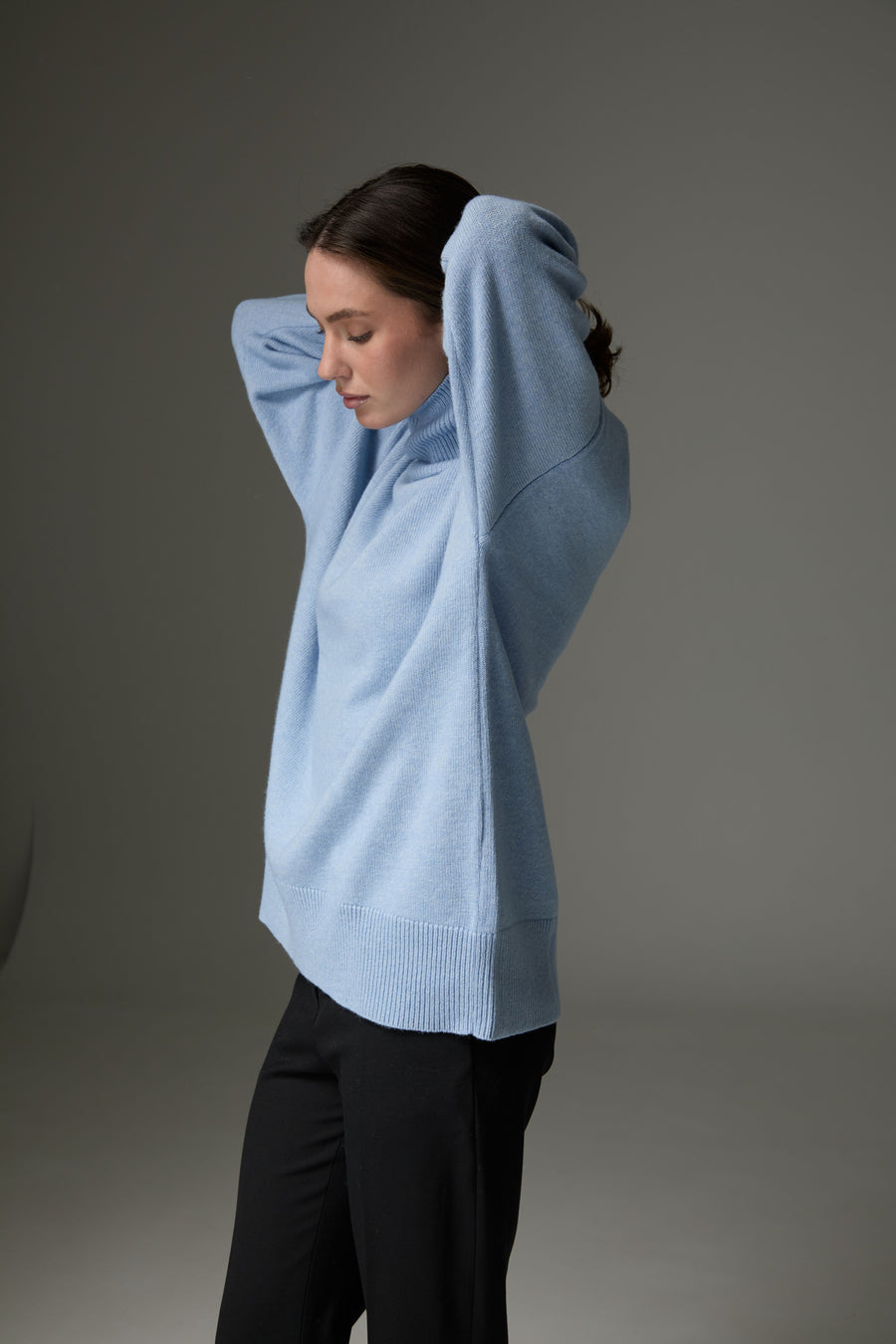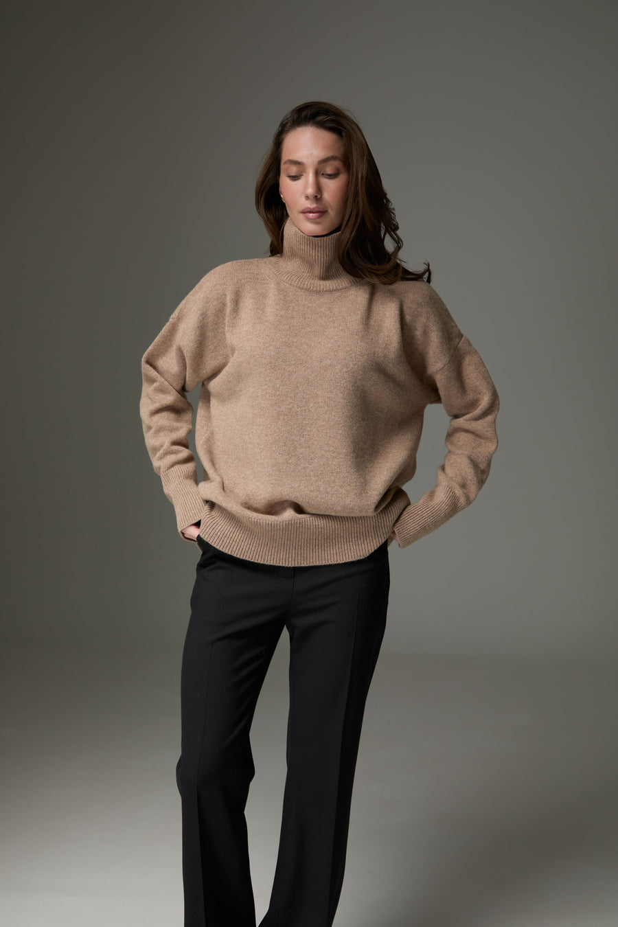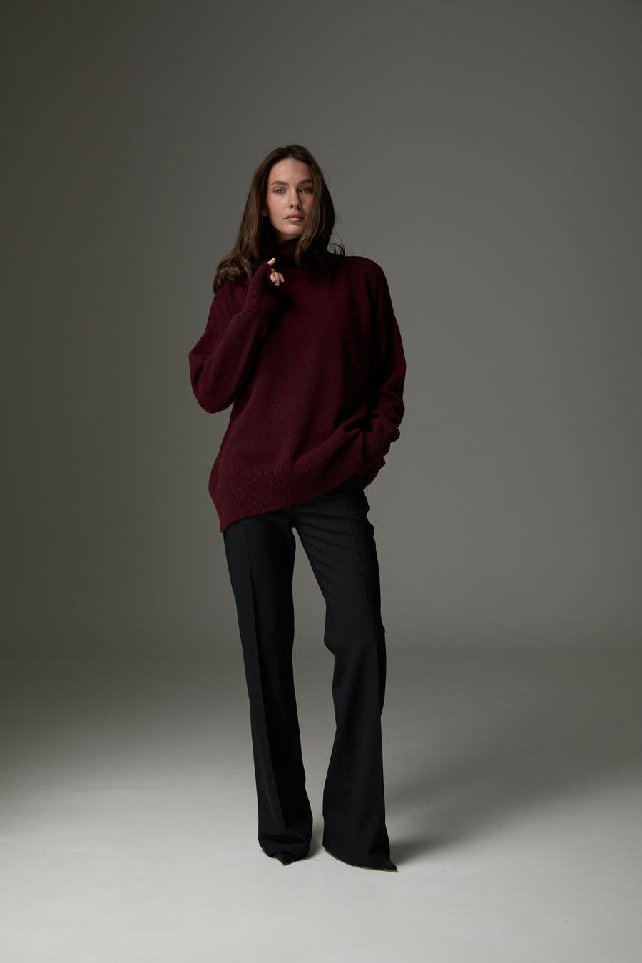 Вовна ягня робить цей подовжений светр надзвичайно м’яким і приємним на дотик. Він створений щоб дарувати затишок і тепло навіть у найхолодніші дні.