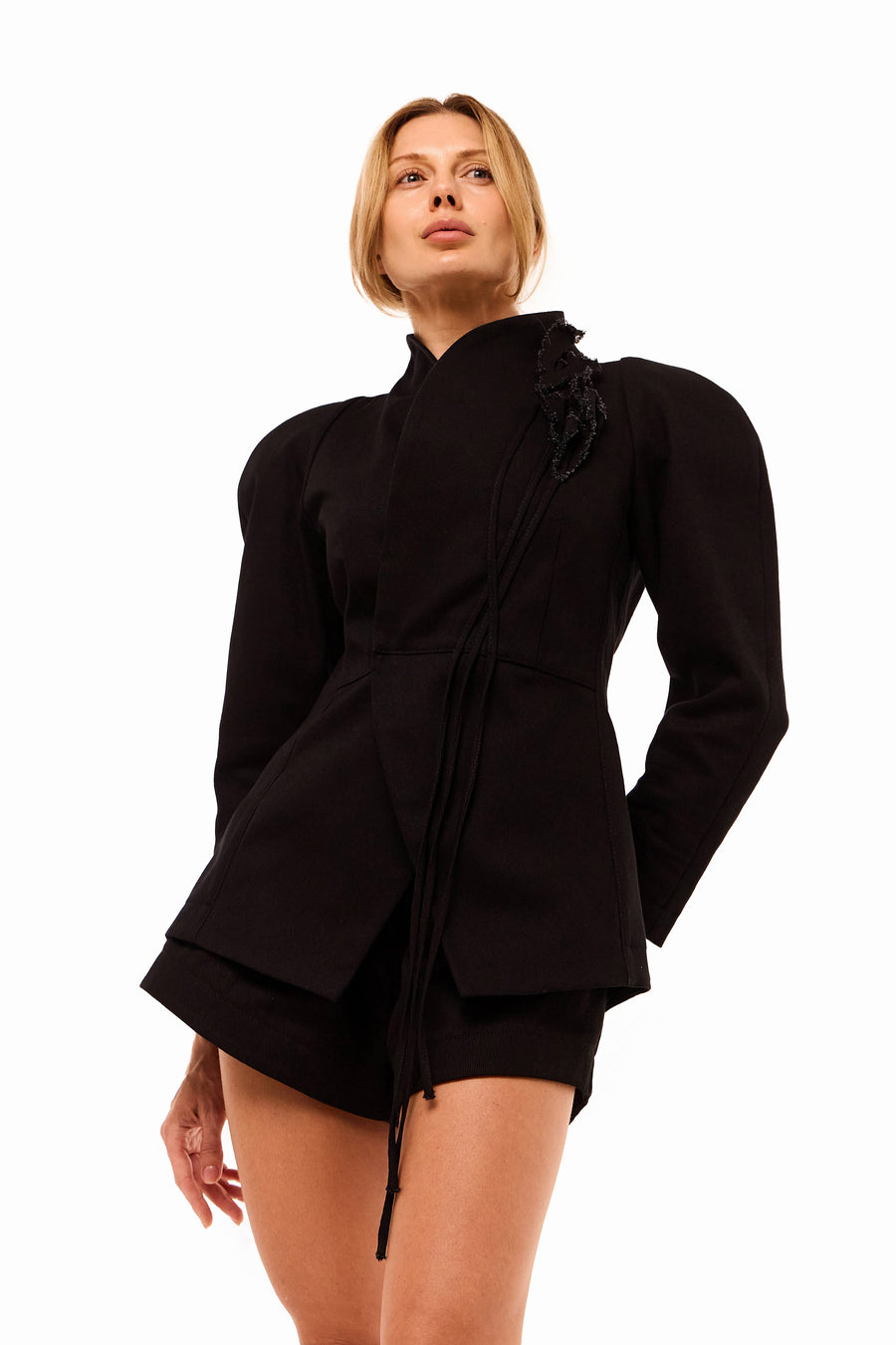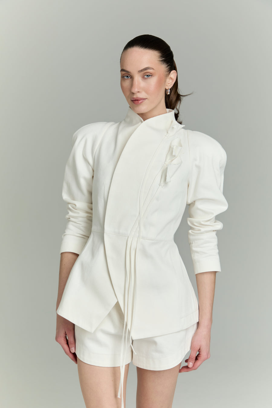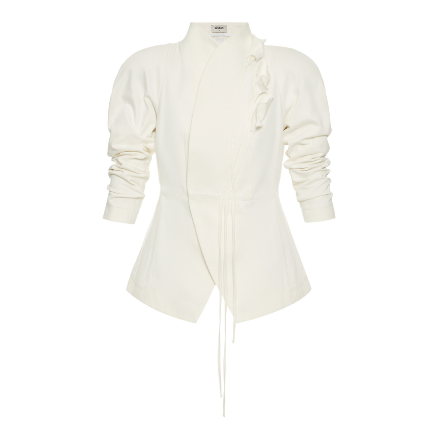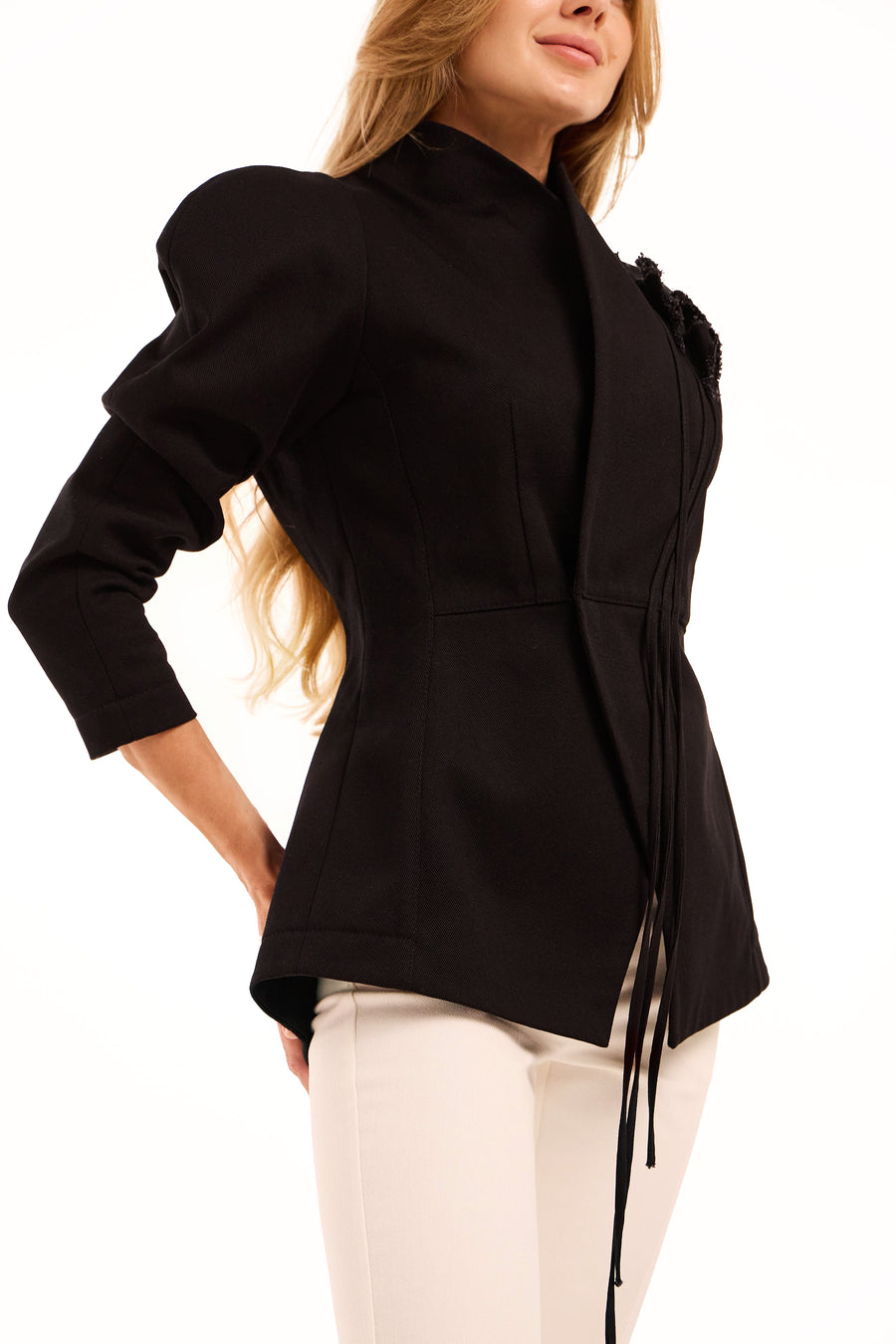 Цей силуетний жакет символ колекції, тримає форму та не втрачає актуальності з роками, виглядає бездоганно як у діловому так і в повсякденному стилі. Елегантна квітка кали - про жіночність, чистоту та силу.