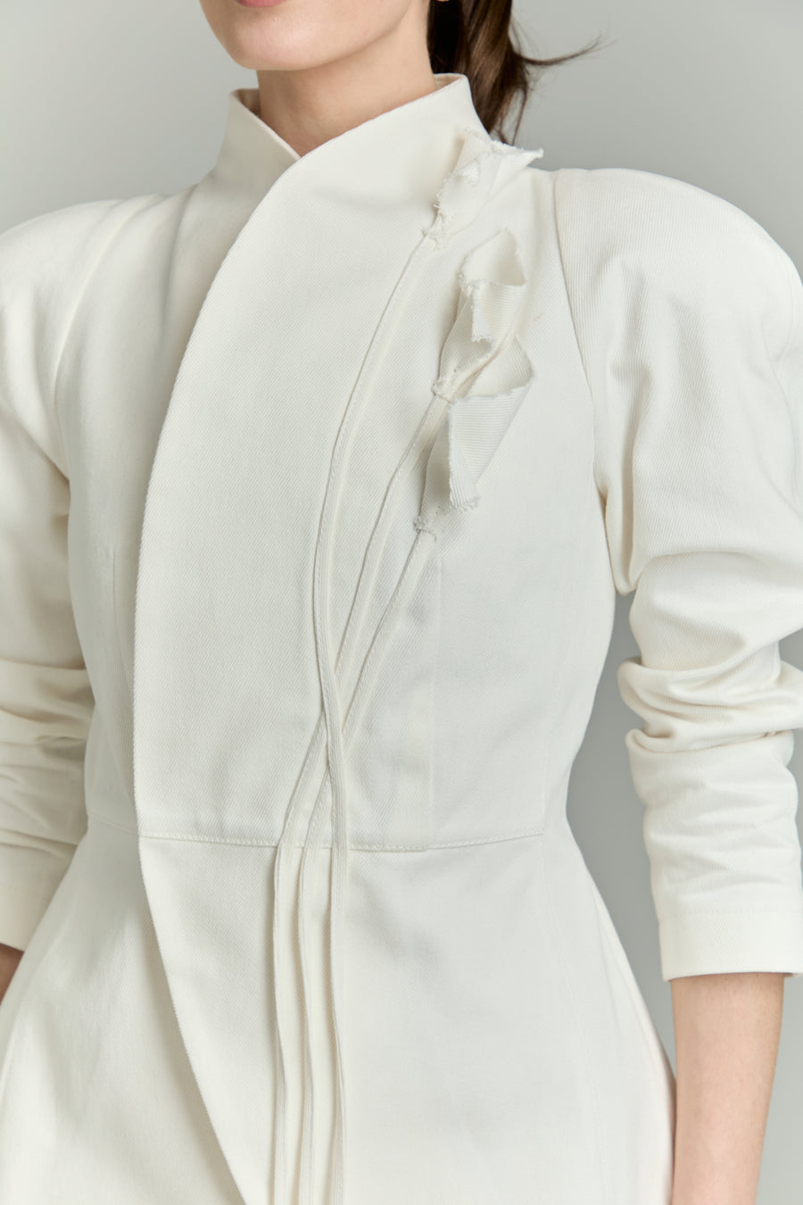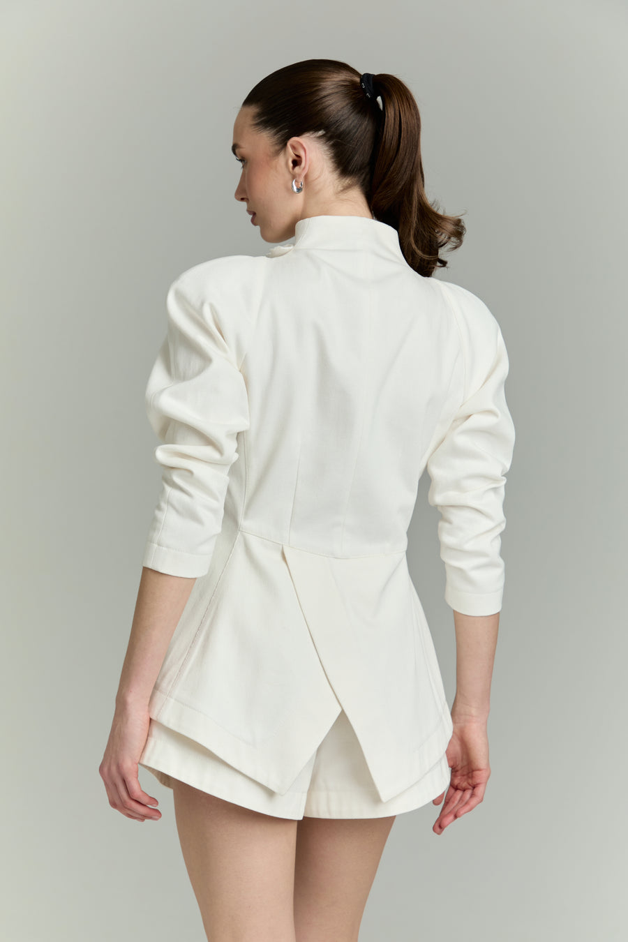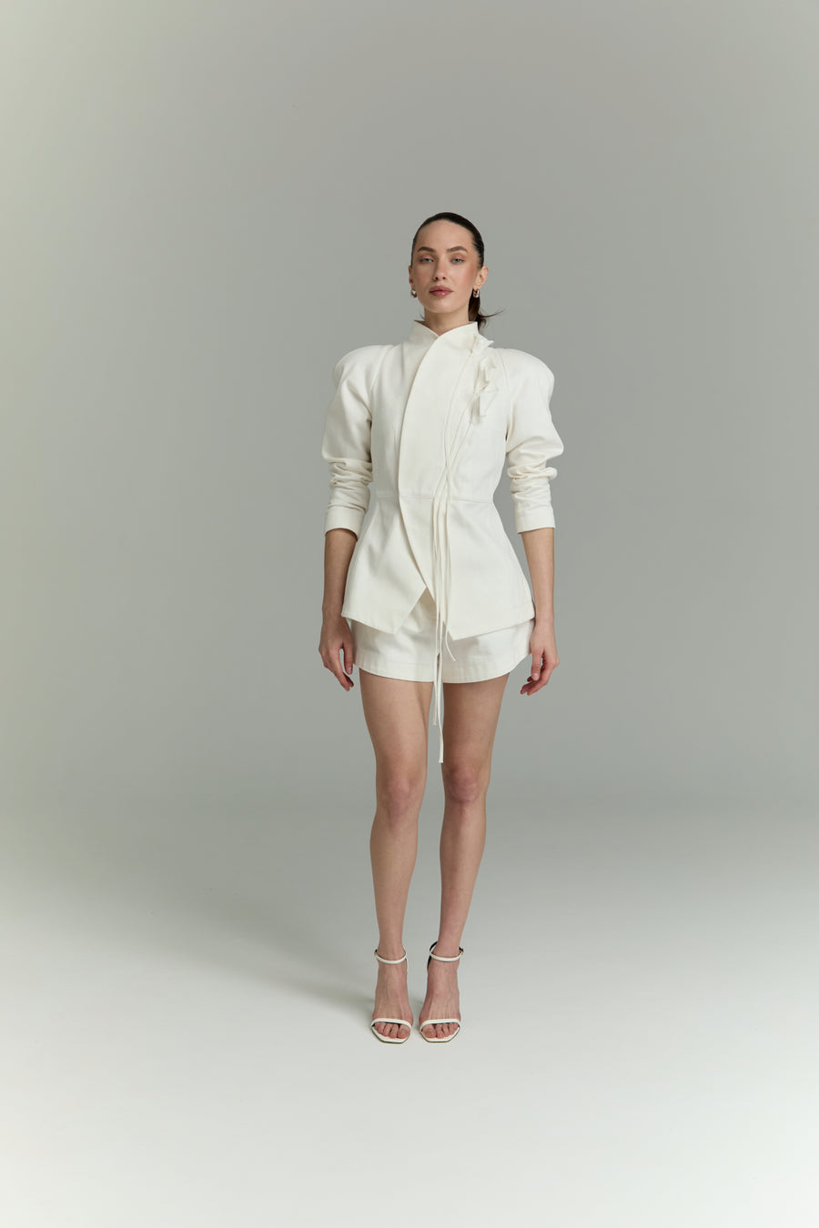 Цей силуетний жакет символ колекції, тримає форму та не втрачає актуальності з роками, виглядає бездоганно як у діловому так і в повсякденному стилі. Елегантна квітка кали - про жіночність, чистоту та силу.